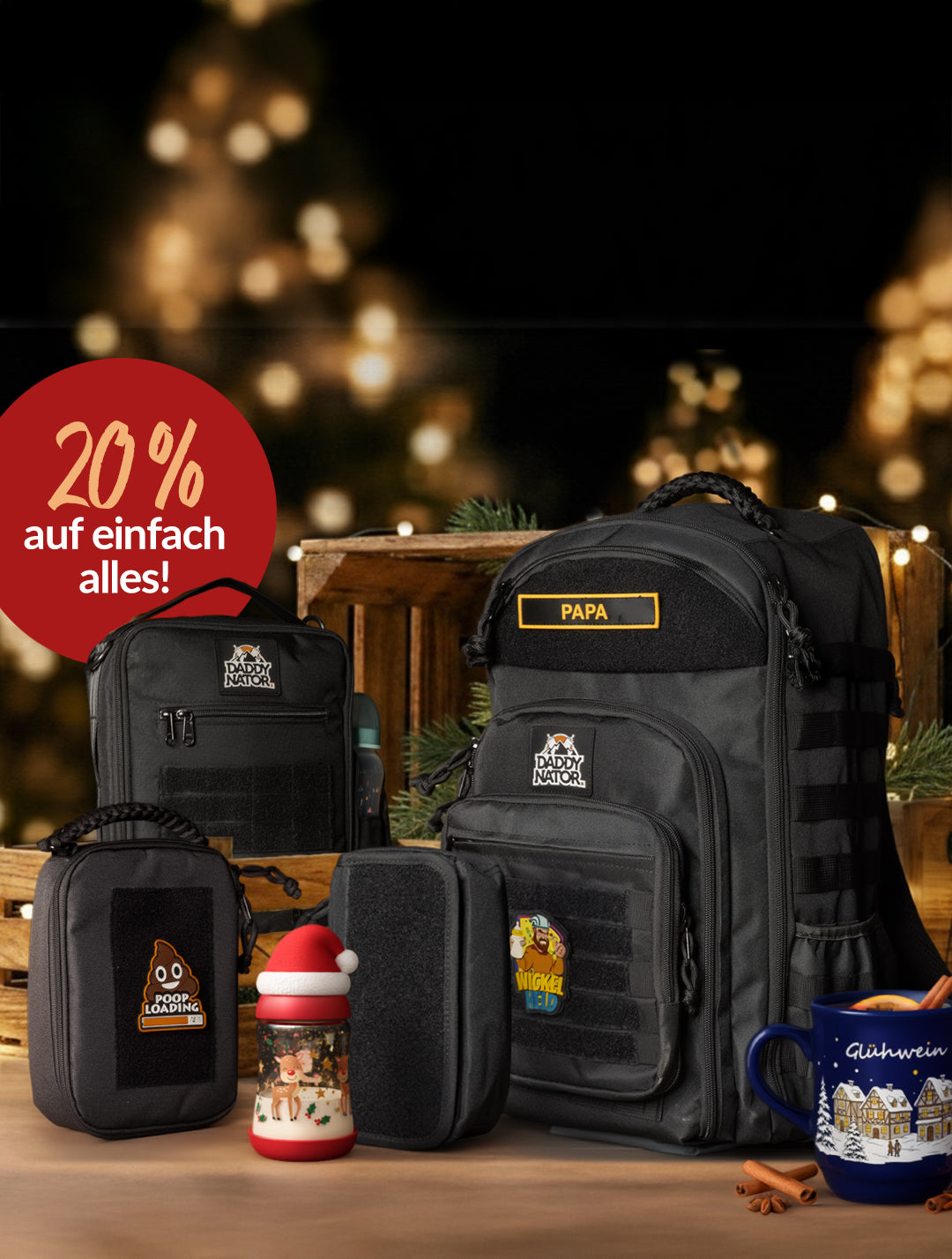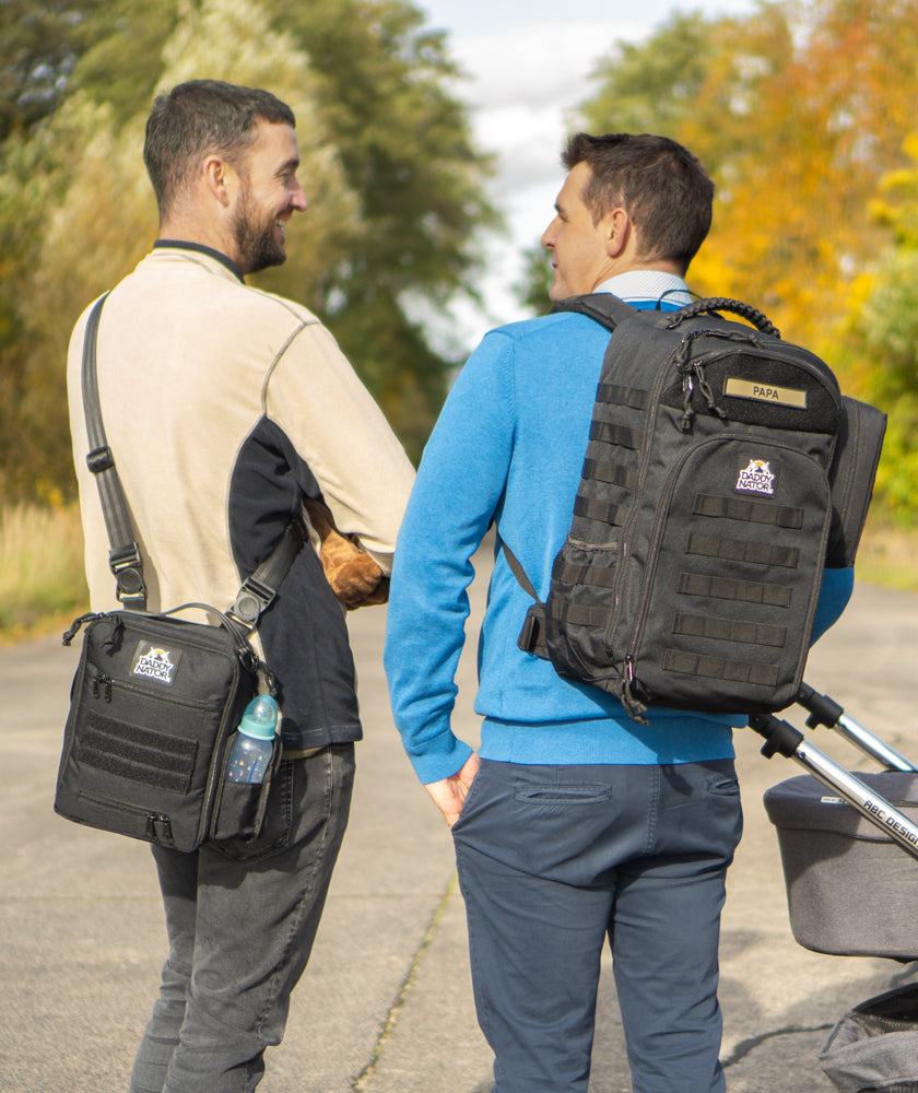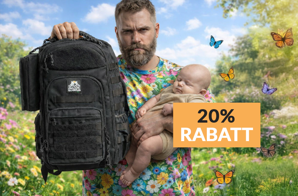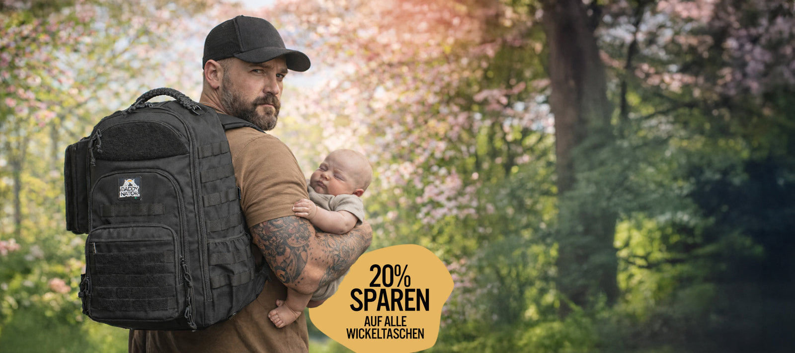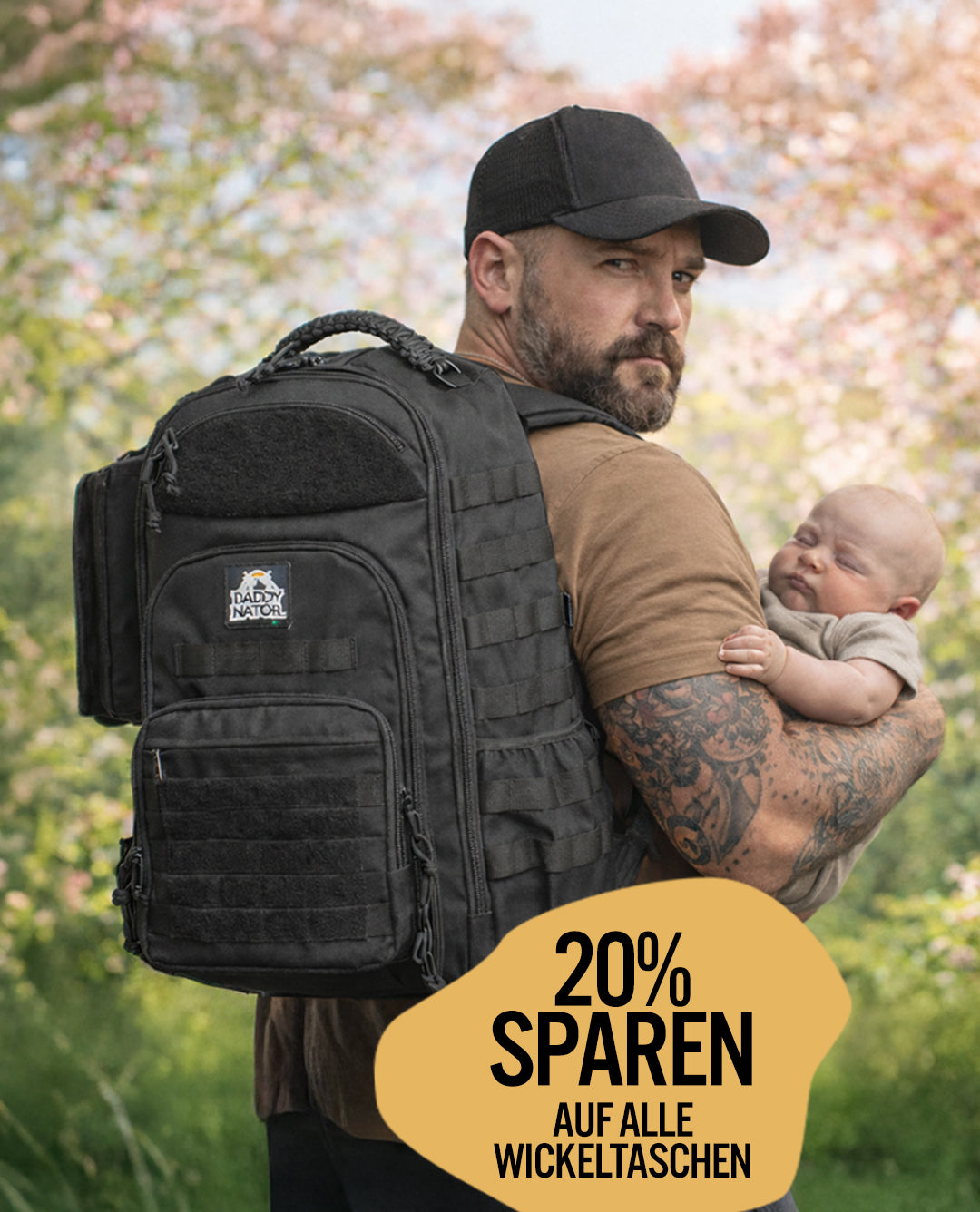 Warum eigentlich nicht? Wir von Daddynator haben einen Wickelrucksack speziell für Väter entwickelt, die keinen Bock haben, mit dem rosa Wickeltäschchen von Mama auf Tour zu gehen.