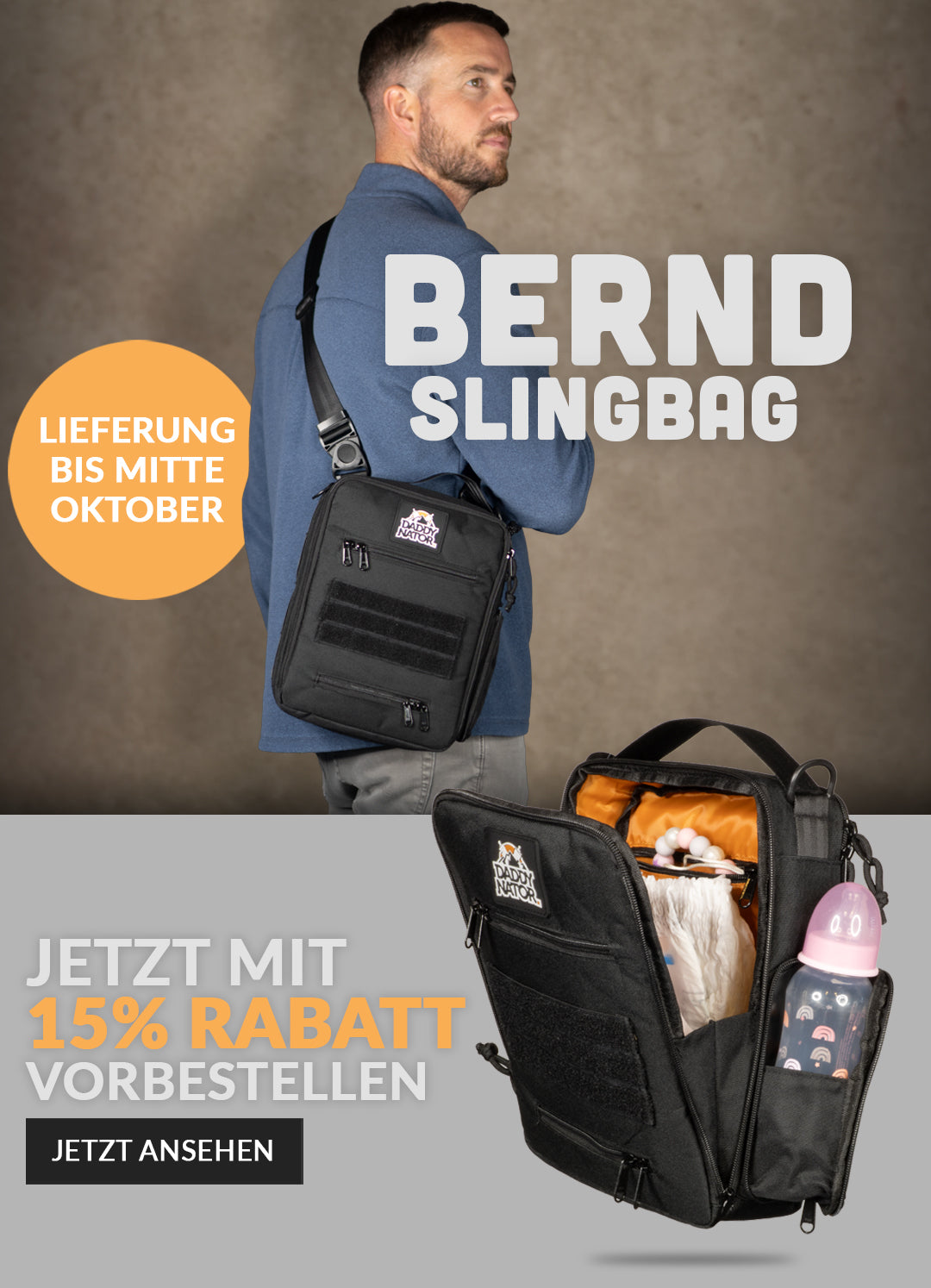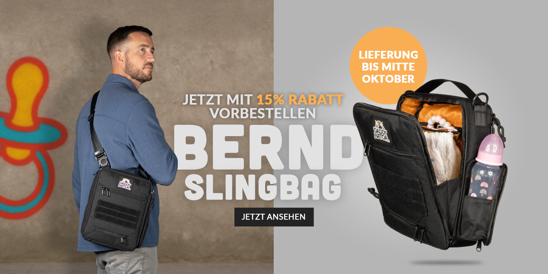 Warum eigentlich nicht? Wir von Daddynator haben einen Wickelrucksack speziell für Väter entwickelt, die keinen Bock haben, mit dem rosa Wickeltäschchen von Mama auf Tour zu gehen.